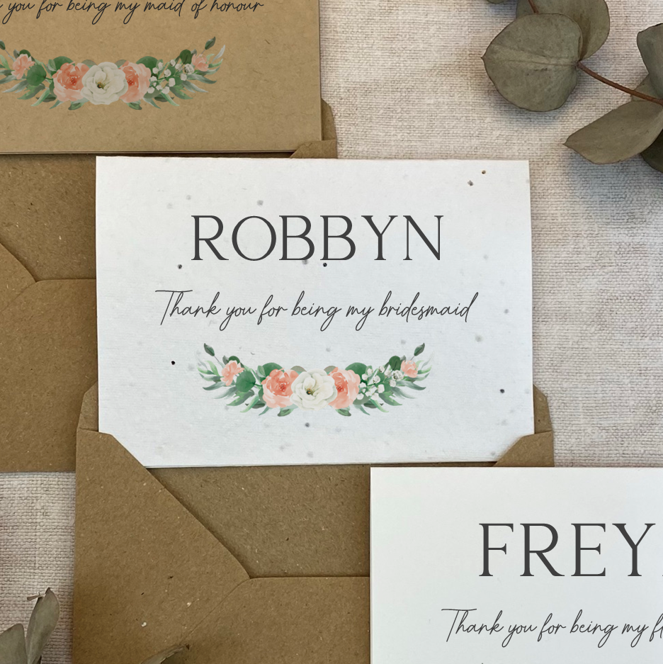 Bridesmaid Thank You Card - Peach & Eucalyptus